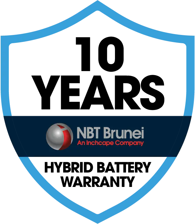 During the first 3 years of service, a defective hybrid battery will be replaced free of charge by manufacturer. Should the hybrid battery fail after the 3rd year and subsequent years, before the end of the 10th year of service, it will be replaced by the dealership, NBT Brunei Sdn Bhd, subject to a limitation of one replacement only.